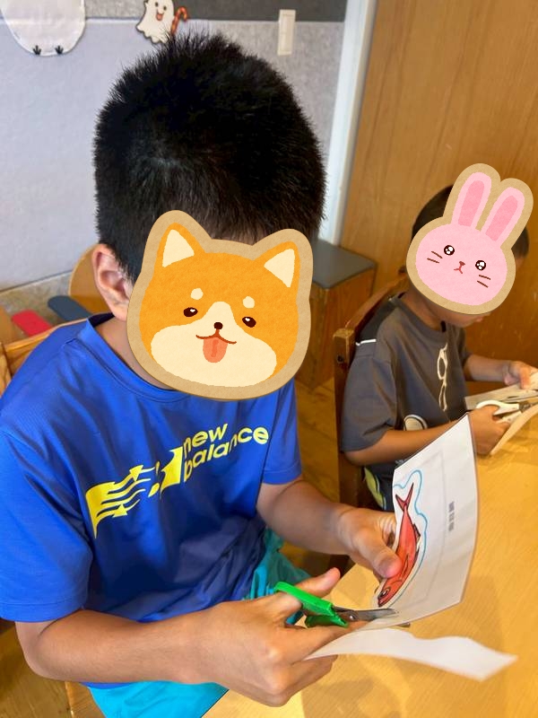 次に、ハサミで魚を切り取って、クリップを付けました📎