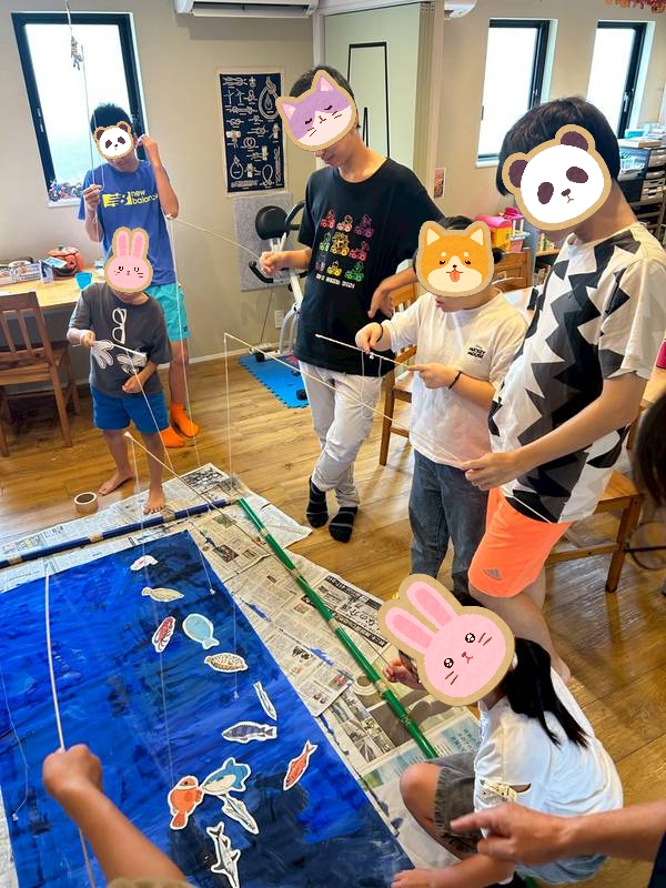 お手製の釣竿を作った後、いざ、魚釣り大会の開催です🏆