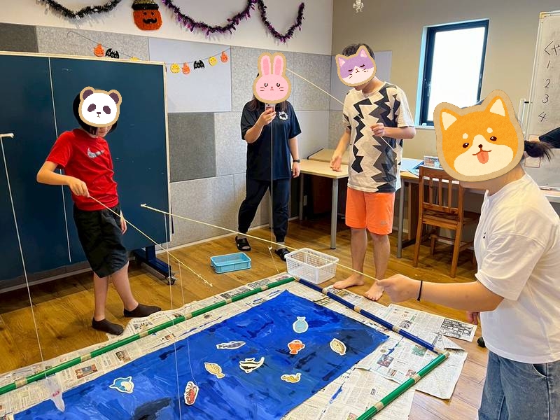 みんなで記念撮影をした後に、射的、輪投げ、魚釣りと