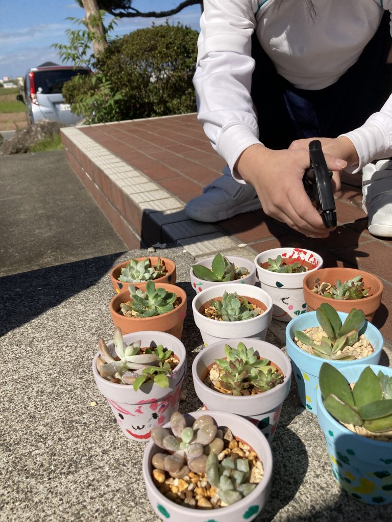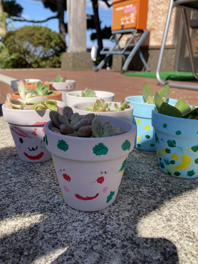 多肉植物は鉢にイラストを描いて、丁寧に植えてお世話をして育てました⭐️