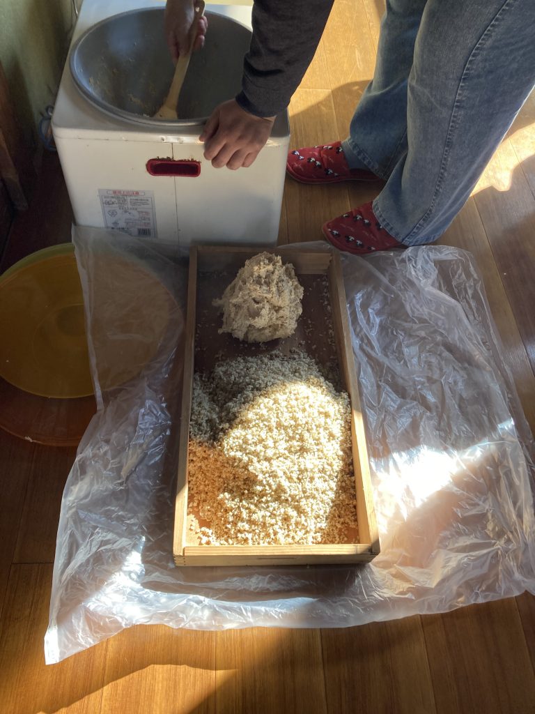 味噌の仕込みをメンバーさんと一緒に行いました。
