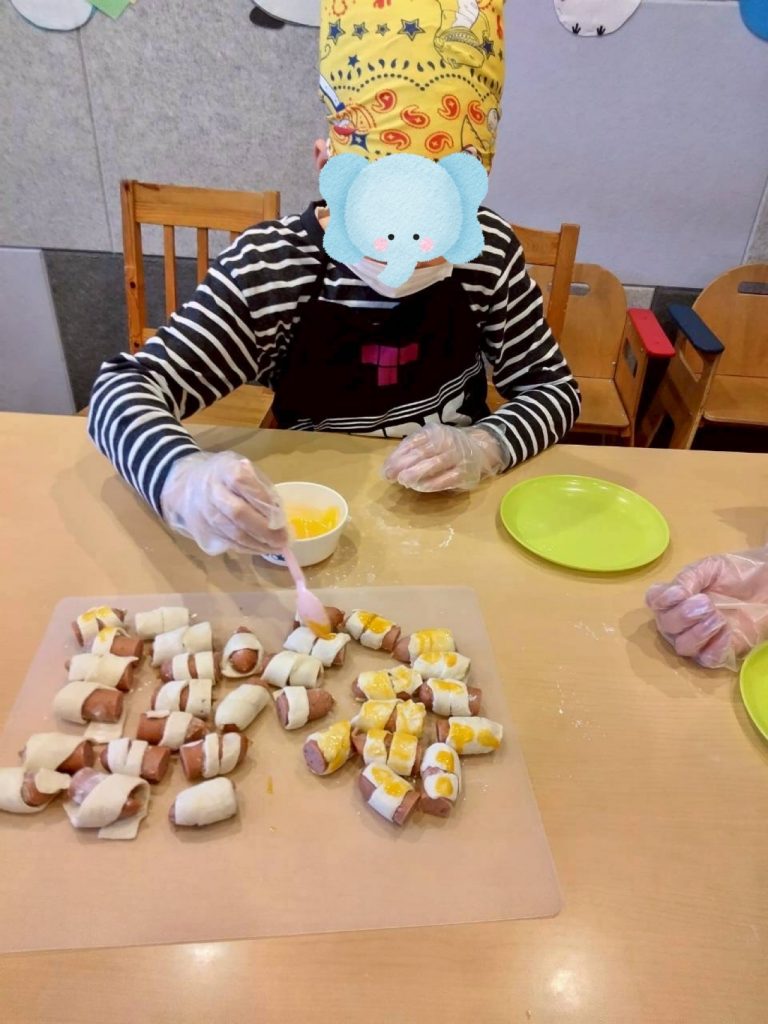 《おやつ作り:苺パイ・チョコパイ・ウインナーパイ》